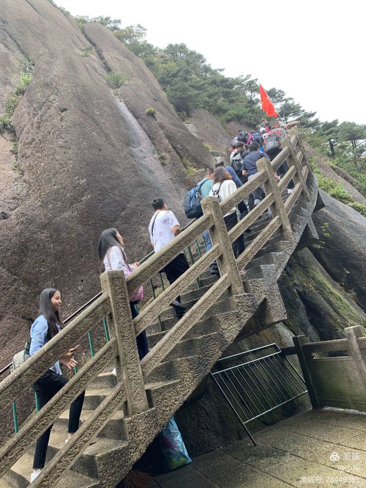 爬山可是一項體力活動,對于缺少運動的年輕人來說可是有很大的挑戰,但途中無一人放棄,為了美景和無限風光,大家都在堅持著往上走